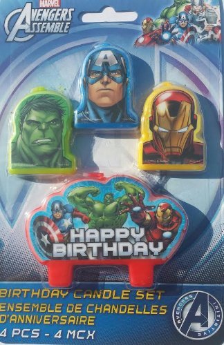 Party Time Avengers Molded Mini Character Birthday Candle Set, Pack of 4, Red , 2.25" x 3.25" Wax