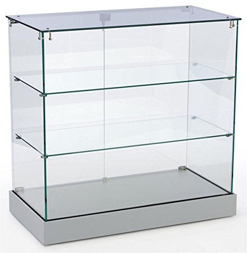 Retail Display Cabinet with Frameless Design, Tempered Glass Case with 2 Shelves, Swing-Open Door, MDF Base (Silver)