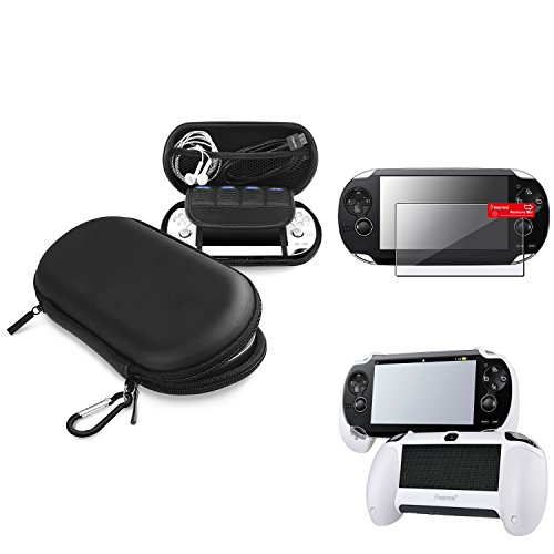 Insten Black EVA Case Cover + White Hand Grip + Clear Screen Protector Compatible With Sony PS Vita PSV