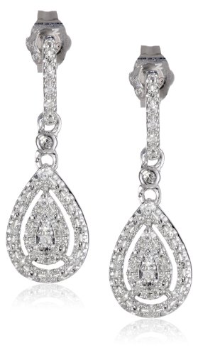 Sterling Silver and Diamond Drop Earrings (0.14 cttw, I-J Color, I2-I3 Clarity)
