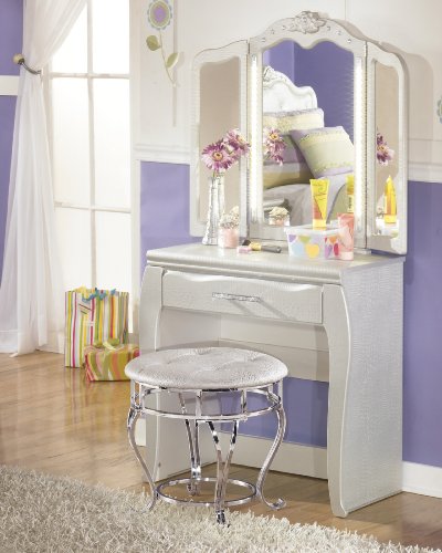 Julia Silver and Pearl Girl's Vanity with Stool