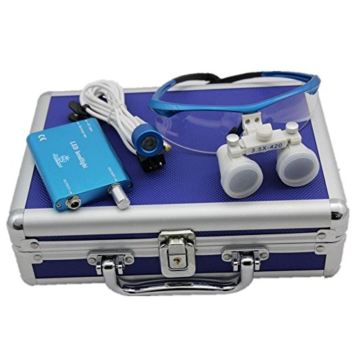 3.5x 420mm Surgical Binocular Loupes HeadLight Blue Aluminum Box