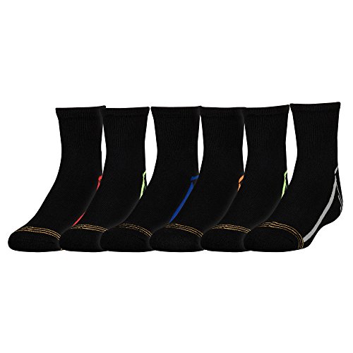 Gold Toe Big Boys' 6 Pack Athletic Quarter Sock, Black, Large