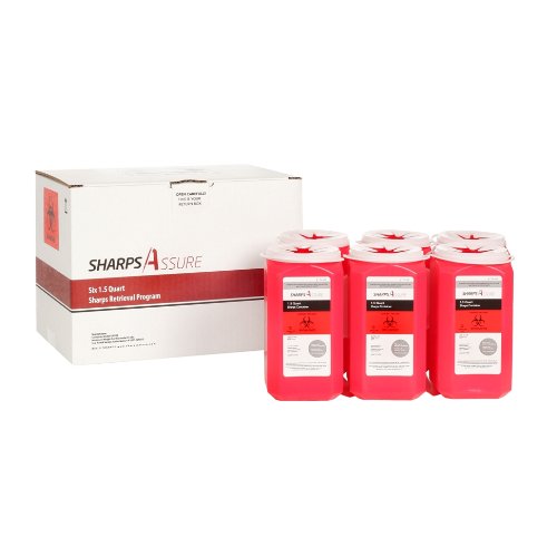 SharpsAssure SA-1Q6 1.5 Quart Sharps Retrieval Program Kit for Used Syringe Disposal, White (Pack of 6)