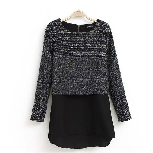 Full Sleeve Dress Woolen Chiffon Bottom Patchwork Solid All-match Dress (Size L)