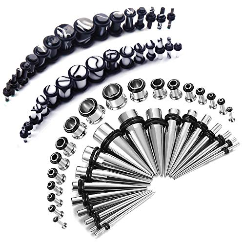BodyJ4You 72PC Gauges Kit Black White Marble Acrylic Plugs Steel Tapers 14G-00G Ear Stretching Set