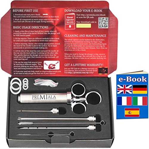 Awesome Meat Injector Aluminum-Free - Creates the Juiciest Turkey and BBQ ever! 2 Cleaning Brushes + 100% Food-Grade Materials - Guaranteed to Keep Your Family Safe!