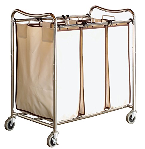 DecoBros Heavy-Duty 3-Bag Laundry Sorter Cart, Chrome