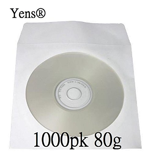 Yens 1000 pcs White CD DVD Paper Sleeves Envelopes with Flap and Clear Window