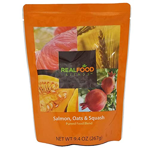 Real Food Blends Salmon, Oats & Squash Pureed Blended Meal for Feeding Tubes, 9.4 oz Pouch (Pack of 12 Pouches)
