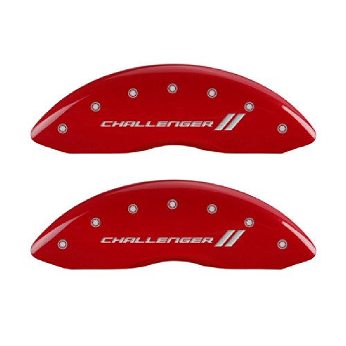 MGP Caliper Covers 12162SCL1RD 'Challenger ll' Engraved Caliper Cover with Red Powder Coat Finish and Silver Characters, (Set of 4)