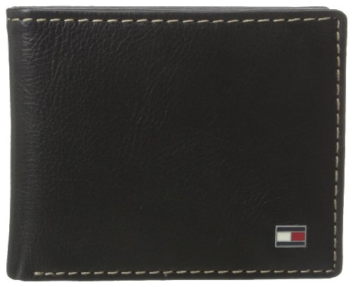 Tommy Hilfiger Men's Bifold Wallet - Leather Slim Thin Classic Billfold for Men with Credit Card Slots, Black, One Size