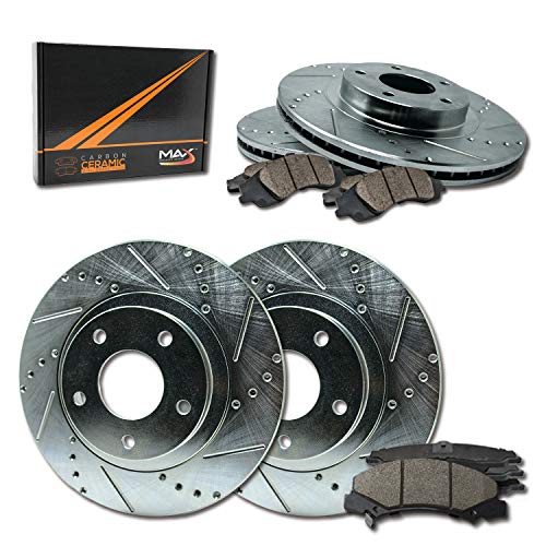 Max Brakes Front & Rear Performance Brake Kit [ Silver Zinc Slotted Drilled Rotors + Ceramic Pads ] KT075213 Fits: 1998-2002 Chevy Camaro | Pontiac Firebird