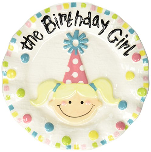 Mud Pie Colorful Ceramic Birthday Dessert Candle Plate, Girl