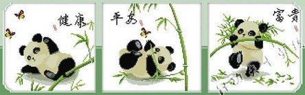 Happy Forever Cross Stitch, Animals,Three Auspicious Panda Baby