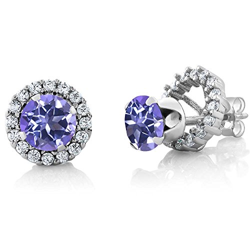Gem Stone King 2.00 Ct Round Purple Blue Mystic Topaz Silver Removable Jacket Stud Earrings
