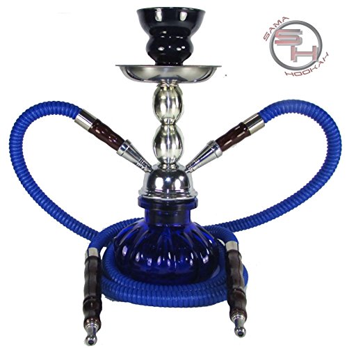 Mini 10" Blue 2 Hose Hookah Shisha With Pumpkin Vase Set - Complete Kit With Bowl, Tray, Tongs, and 2 Hoses