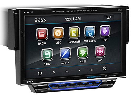 BOSS Audio Systems BV8974B Single Din, Touchscreen, Bluetooth, DVD CD MP3 USB SD AM FM Car Stereo, 7 Inch Digital LCD Monitor, Detachable Front Panel, Wireless Remote, Multi-Color Illumination