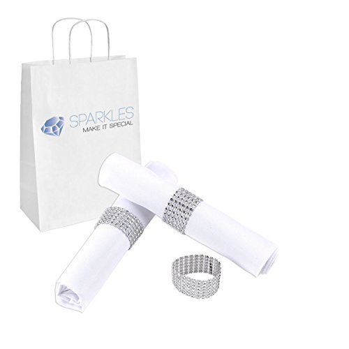 Sparkles Make It Special 100-pcs Rhinestone Diamond Napkin Rings - Silver - Wedding Party Dinner Banquet Reception Catering Special Event - Handmade Bling Decoration