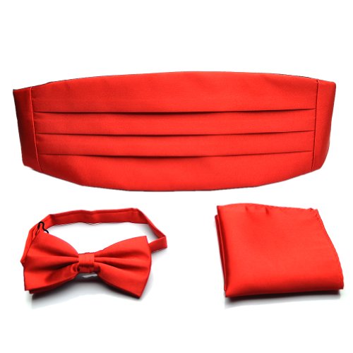 PenSee Mens Formal Solid Pre-tied Bow Tie & Pocket Square & Cummerbund Set - Various Colors