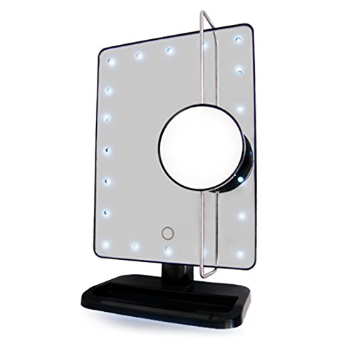 Rucci Vanity Mirror with L.E.D. Light and Movable Round Insert Mirror 10X Magnification. 8 inches Long by 13 inches Height Including Base. Round Insert Mirror 3 inches Diameter. Soft Touch Switch.