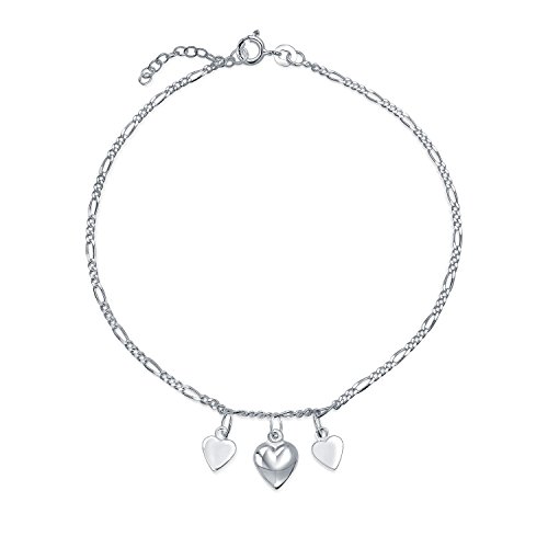 3 Multi Hearts Dangle Charms Anklet Ankle Bracelet For Women 925 Sterling Silver Adjustable 9 To 10 Inch With Extender