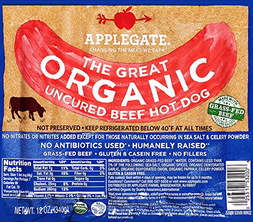 Applegate, Organic Beef Hot Dogs, 12 oz, 8 ct