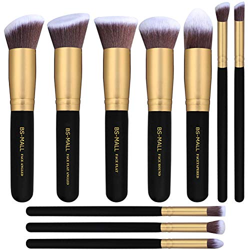 BS-MALL(TM) Makeup Brushes Premium Makeup Brush Set Synthetic Kabuki Cosmetics Foundation Blending Blush Eyeliner Face Powder Brush Makeup Brush Kit (10pcs, Golden Black)