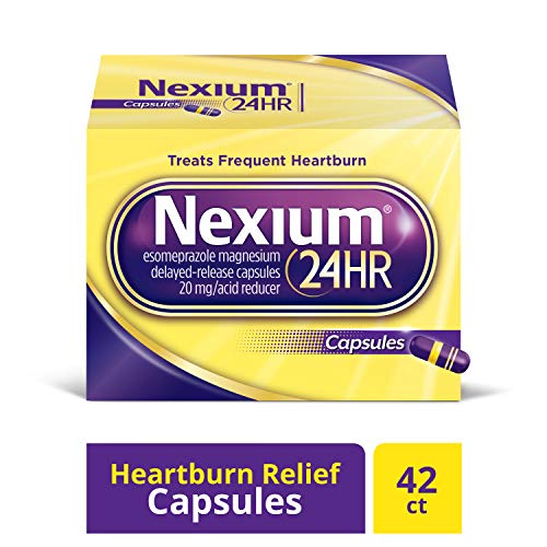 Nexium 24HR (42 Count, Capsules) All-Day, All-Night Protection from Frequent Heartburn Medicine with Esomeprazole Magnesium 20mg Acid Reducer