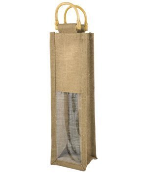 Natural Jute Wine Bags With Wooden Handles - 5 Pack