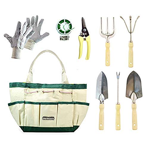 GardenHOME Ergonomic Garden Tools 4 Piece Tool Set with Trowel, Cultivator, Transplanter (7T)
