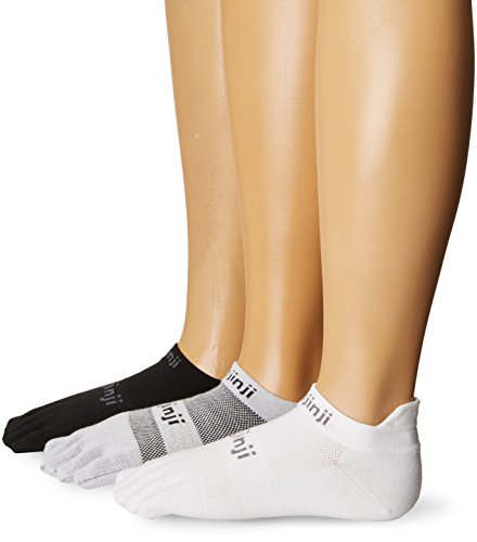 Injinji Run 2.0 Lightweight No Show Toe Socks 3 Pack (Black/Gray/White, Xlarge)