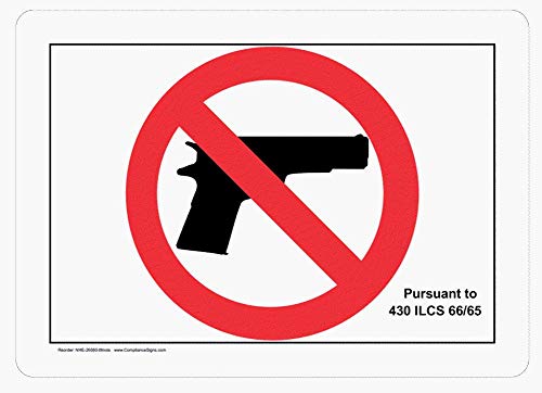 Illinois [Graphic] No Firearms Pursuant to 430 Ilcs 66/65 Label Decal, 7x5 in. Vinyl for Alcohol/Drugs/Weapons by ComplianceSigns