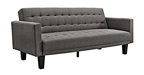 DHP Sienna Sofa Sleeper, Tufted Linen Upholstery with Tapered Wooden Legs, Gray