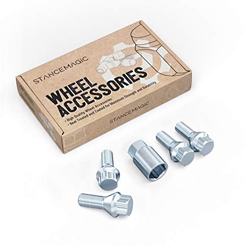 4pcs Locking Spline Silver Lug Bolts 12x1.5 with Socket Key (26mm OEM Shank Length) Cone Seat for many BMWs: 128i 135i 318i 320i 325i 328i 335i M3 525i 528i 530i 535i M5 Z3 Z4 E36 E46 E60 E90 E92 E93