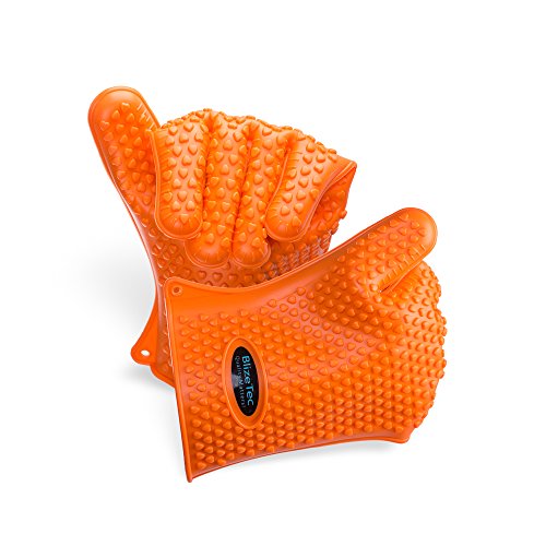 BlizeTec Oven Mitts and Pot Holders; Non-Slip Heat Resistant Cotton with Terrycloth Lining Surface Black Gloves and Silicone Pot Mats (4 Pcs)
