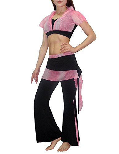 2 PCS SET: Womens Belly Dance Flutter Sleeves Top & Skirt Pant Set S-M Multicolor