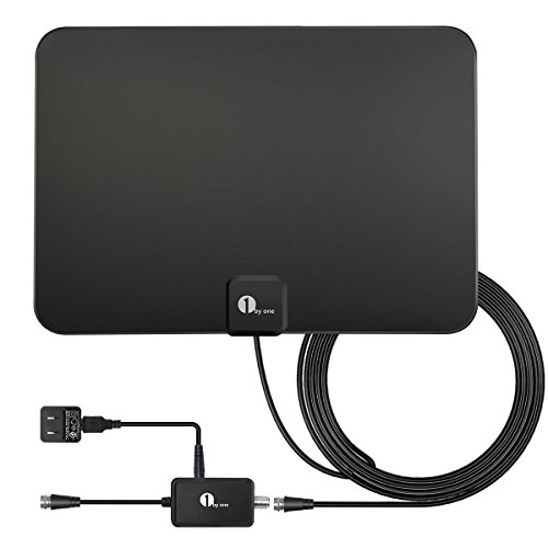1byone OUS00-0184 Amplified Digital TV Antenna with 50 Miles Range, Support All TV's 1080p 4K for Indoor with HDTV Amplifier Signal Booster, 10ft Coaxial Cable and USB Power Supply