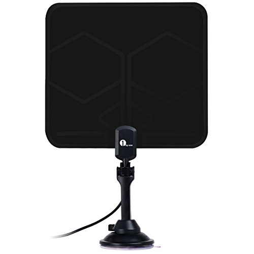 1byone 25 Miles Super Thin HDTV Antenna with Suction Cup Stand and 10 Feet High Performance Coaxial Cable