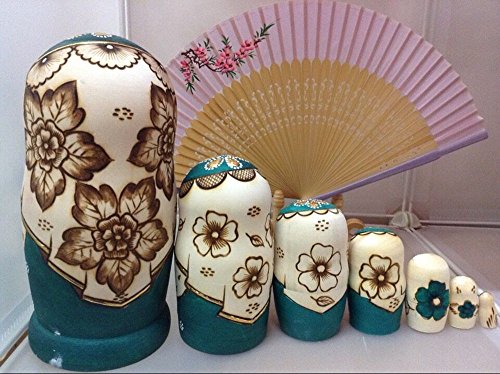 Leegoal New 7pcs Wooden Russian Nesting Dolls Braid Girl Dolls Traditional Matryoshka Wishing Dolls Gift Green