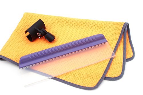 One Pass Classic 12" Waterblade Silicone T-Bar Squeegee Purple with Heavy Duty Extension Pole Adapter and XL Microfiber Towel