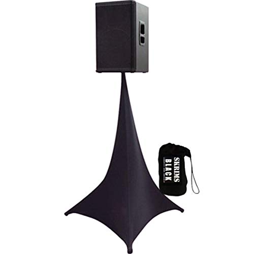Amazin Gear SKRIMS Tripod Speaker Stand Stretch Cover, Triple Sided, Scrim 360, Black Spandex DJ Skirt with 3-Sides +FREE Bag, (SKRIMS-3B)