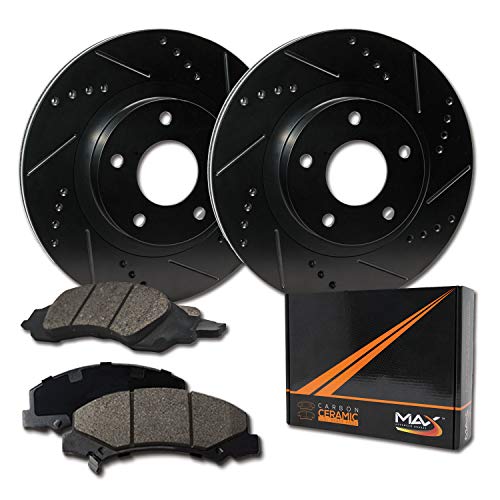 Max Brakes Front Elite Brake Kit [ E-Coated Slotted Drilled Rotors + Ceramic Pads ] KT012681 Fits: Chevy 03-05 Astro Express & Avalanche 1500|00-06 Tahoe Silverado & Suburban 1500