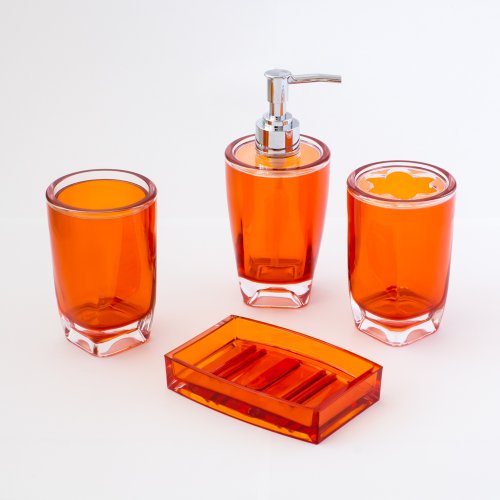 JustNile Essential 4-Piece Bathroom Set in Durable Plastic for Shower and Bathroom, Includes Soap Dish, Toothbrush Holder, Round Tumbler and Dispenser/Pump - Opaque Orange