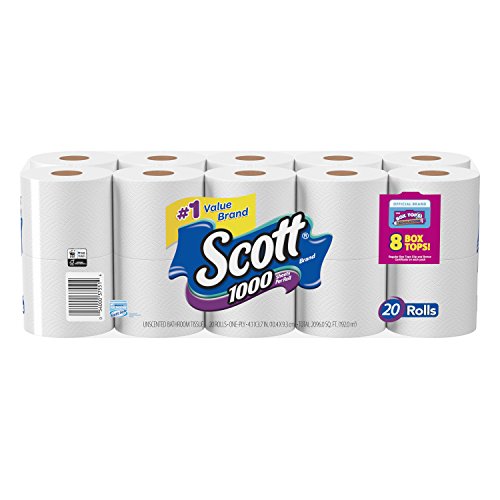 Scott 1000 Sheets Per Roll Toilet Paper, 27 Rolls, Sewer-Safe, Septic-Safe, 1-Ply Bath Tissue, America's Longest Lasting Roll