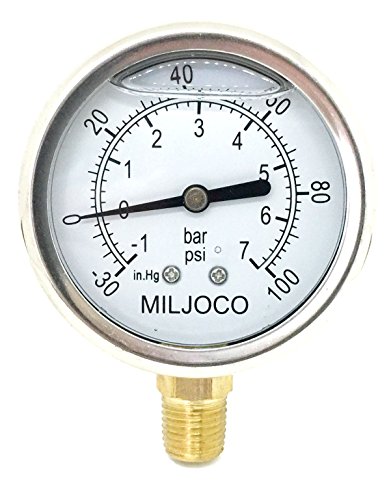 Miljoco PLF2598L005 Liquid Filled Gauge, 30" Hg-0-100 PSI/Bar