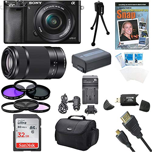 Sony Alpha a6000 24.3MP Interchangeable Lens Camera Bundle with Compact Deluxe Gadget Bag and 16-50mm Power Zoom Lens (19 Items)
