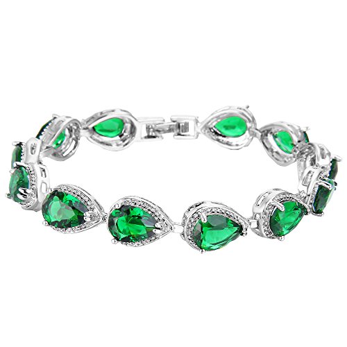 EVER FAITH Women's Prong CZ May Birthstone Teardrop Tennis Bracelet Emerald Color Silver-Tone