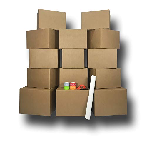 uBoxes 1 Room Bigger Moving Kit, 14 Boxes, Smart Move Tape and Dispenser, Marker