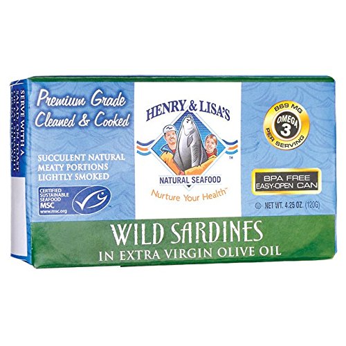 Henry & Lisa's Natural Seafood Wild Sardines in Extra Virgin Olive Oil, 4.25 Ounce (Pack of 12)